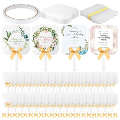 - Generous Package Inclusion: the set comes with 50 double sided sublimation wedding fans with sticks and 50 golden bows; We also include 2 double sided adhesive tapes to help with the customization process, ensuring that you have all necessary components